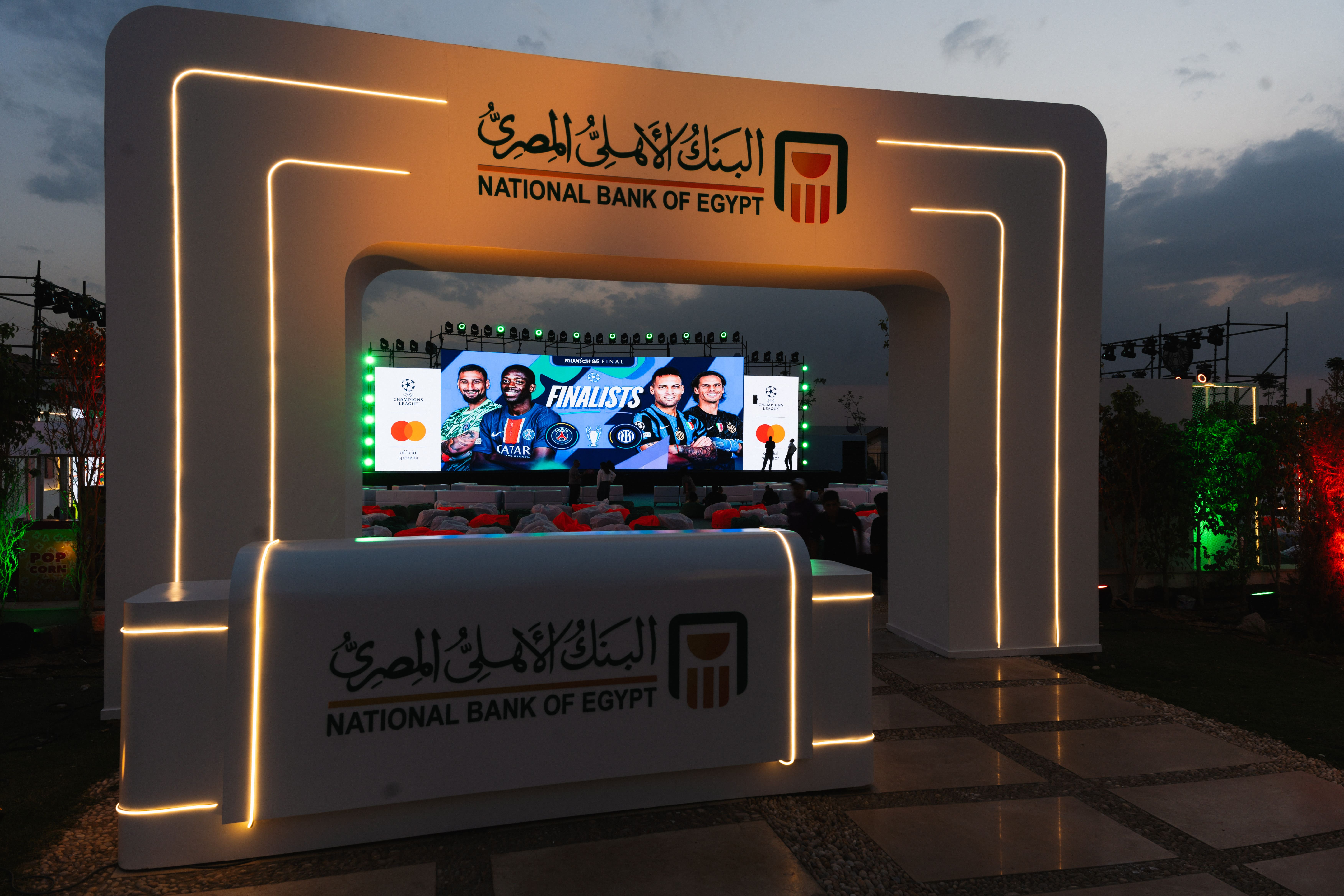 Studio 7 produced an exclusive VIP clients gathering for the National Bank of Egypt, bringing together top customers to celebrate the UEFA Champions League through a premium live match viewing experience. The event was art-directed as a soccer museum, transforming the venue into an immersive environment inspired by the history and spirit of the game. Through curated design, themed installations, and seamless live streaming, the experience combined sport, entertainment, and hospitality to create a memorable evening for the bank’s most valued clients.